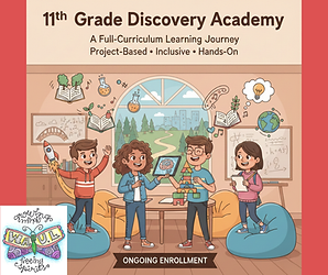 Ongoing Enrollment • Project-Based • Inclusive • Hands-On COMING SCHOOL YEAR 2026-27!!! Age: 15-18 years old 1 hour per class 4 days per week Step into a year of meaningful learning, creative thinking, and real-life skill building! 11th Grade Discovery Academy is designed especially for homeschooling teens who learn best by doing, exploring, discussing, and connecting with others. Instead of dry textbooks and long lectures, we bring learning to life through hands-on projects, group challenges, interactive activities, and plenty of conversation. Students build confidence, friendships, and independence while strengthening the academic skills they’ll use in high school, college, careers, and everyday life. Throughout the year, learners dive into engaging literature and writing workshops, sharpen grammar and communication skills, and practice expressing their ideas clearly through essays, discussions, and creative projects. In math, Algebra 2 concepts become approachable and practical as students solve real-world problems, graph functions, and explore patterns and equations together. Science focuses on Environmental Science with meaningful, modern topics like sustainability, ecosystems, climate change, conservation, pollution, and how our choices impact the planet — helping students connect science to the world around them. We keep things supportive, inclusive, and teen-friendly — a place where questions are encouraged, friendships grow naturally, and every learner feels welcome. If you’re looking for a full-year program that blends academics, life skills, and community in a relaxed, encouraging environment, this is the perfect fit. Come learn, explore, and grow with us! Class Syllabus: https://drive.google.com/file/d/14uXO4a06ADiO0zsNPpVndnTVWv0_WTY2/view?usp=drive_link Classes meet Monday through Thursday for one hour each day, giving learners a consistent and supportive routine. All sessions are held live online through Pencil Spaces, making it easy for families to join from anywhere. We also use Pencil Spaces to share assignments, weekly spelling lists, announcements, and helpful resources, ensuring families stay connected and informed throughout the year.